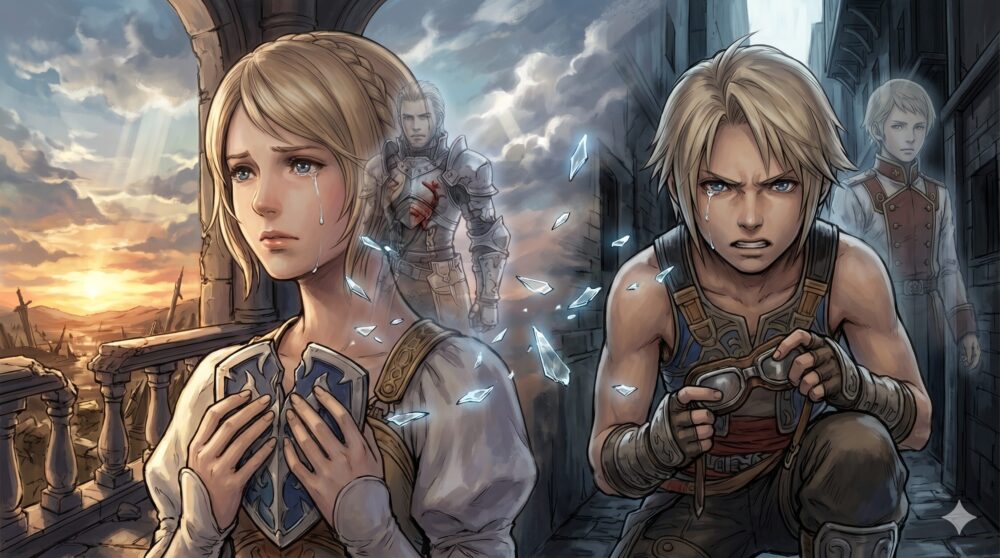 この戦争で、ダルマスカの王女アーシェは最愛の夫(ラスラ)を失い、主人公の少年ヴァンは唯一の家族であった兄(レックス)を失いました。 二人の心に深く刻まれた「帝国への憎しみ」と「大切な人を失った悲しみ」。これが物語の大きな原動力となっていきます。