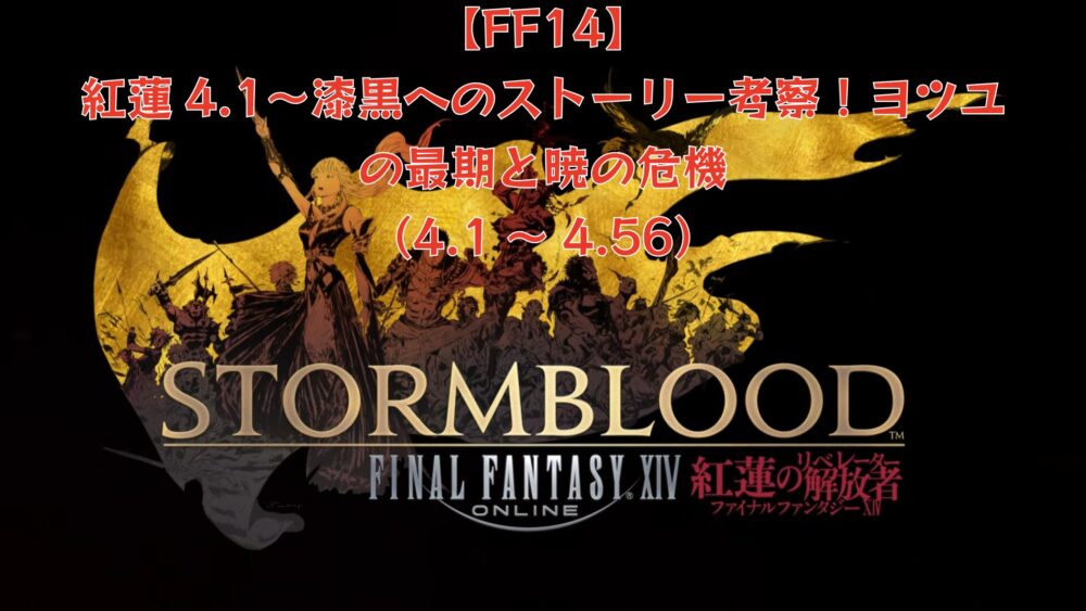 「紅蓮編のメインが終わったけど、崩落したドマ城に消えたゴウセツとヨツユはどうなったの?」 「パッチ後半から急に暁のメンバーがバタバタ倒れていって怖い…!」 「漆黒のヴィランズにどう繋がっていくのか、ストーリーと各国の状況をおさらいしたい!」