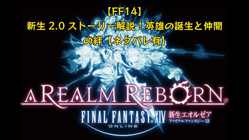 FF14の物語の土台となる「新生エオルゼア(パッチ2.0)」。 5年前の「第七霊災」で一度壊滅した世界が、いかにして再生し、あなた(光の戦士)が英雄と呼ばれるようになったのかを紐解く、記念すべき最初の物語です。