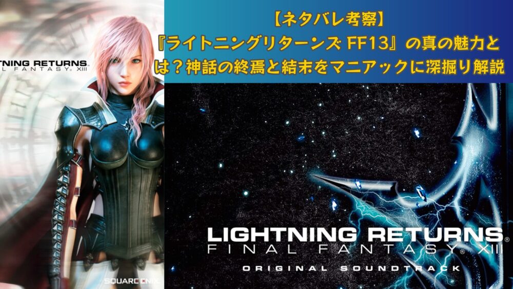 ファイナルファンタジーXIIIから始まった「ファブラ・ノヴァ・クリスタリス」神話の完結編としてリリースされた『ライトニングリターンズ FF13』。発売から年月が経過した現在でも、その圧倒的なストーリーの完成度と、賛否両論を巻き起こした衝撃のエンディングが熱く語り継がれています。